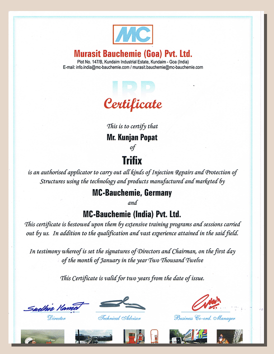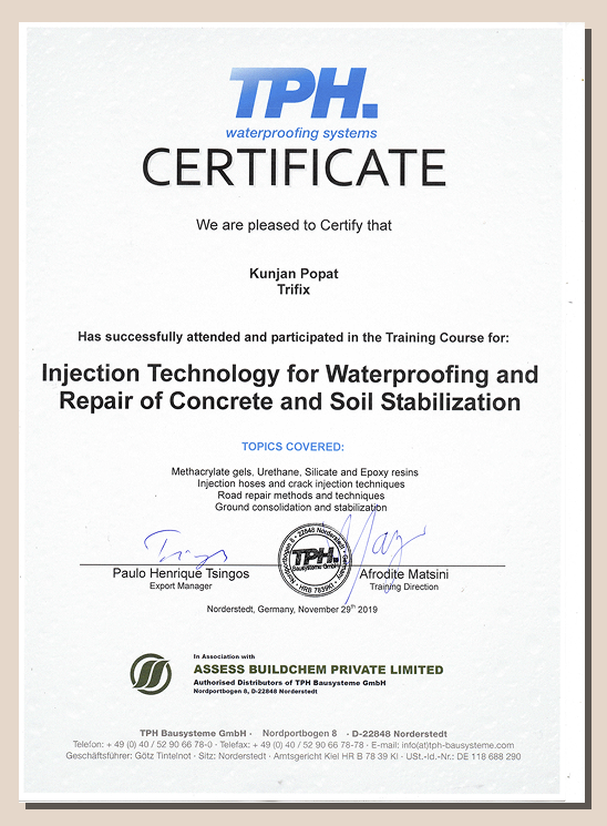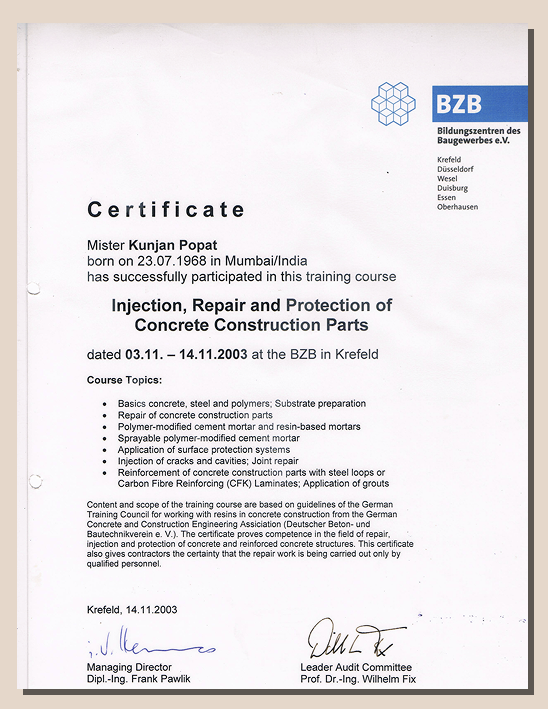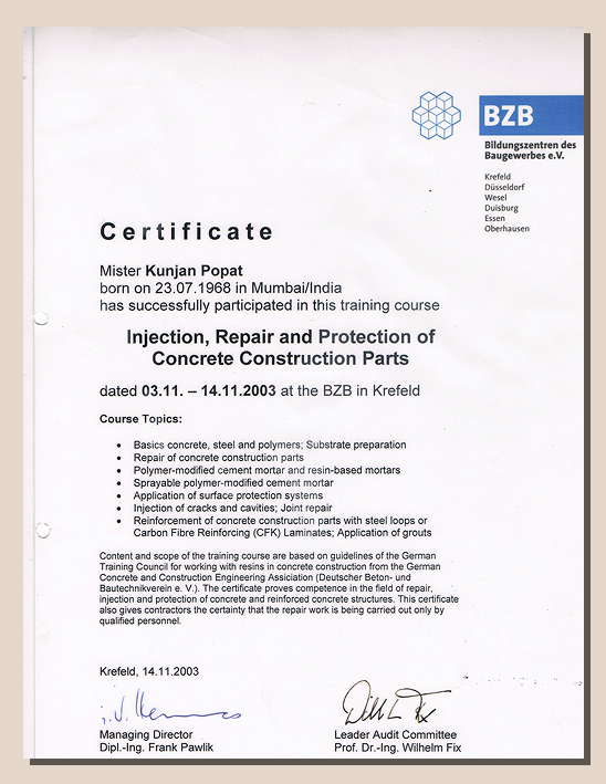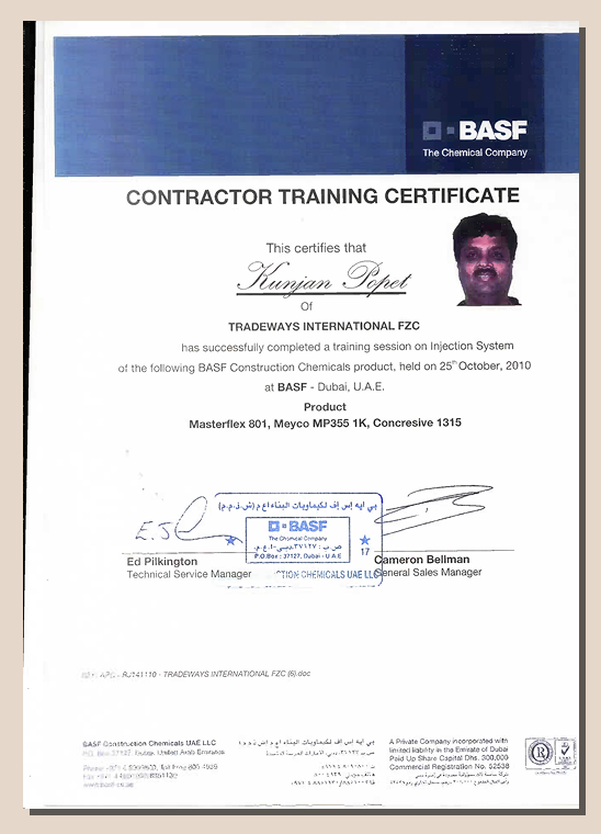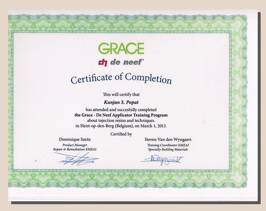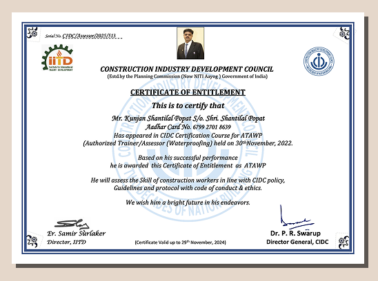 - Qualified Trainer – Certified from Europe and Construction Industry Development Council (CIDC), India, delivering specialized training programs for engineers, applicators, and industry professionals.